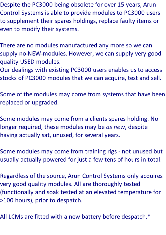We have recently acquired a stock of NEW* PC3000/PC300 modules to supplement our existing stock of high quality USED modules.